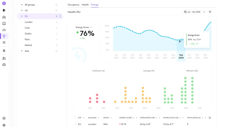 Nhận thông tin chuyên sâu về môi trường trong phòng và lưu lượng không khí, cùng các gợi ý giúp cải thiện hiệu quả sử dụng năng lượng bằng cách điều chỉnh nhiệt độ phòng.