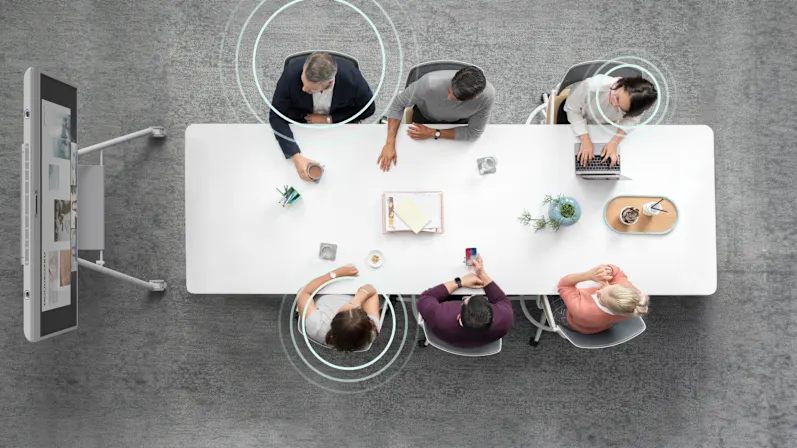 Đảm bảo rằng âm thanh và hình ảnh từ mọi người đều rõ nét trong phòng họp và không gian mở. Các công nghệ video và âm thanh ứng dụng AI — RightSight 2 và RightSound 2 — đảm bảo lấy khung hình tối ưu và phát âm thanh rõ ràng cho mọi người tham gia.